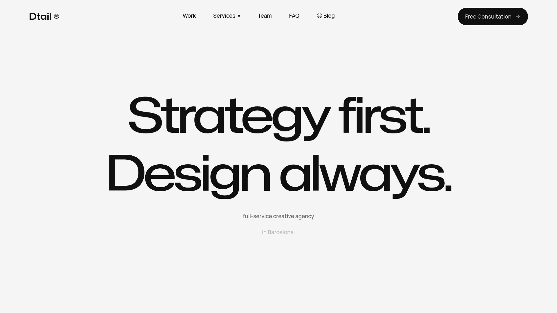 Dtail Studio е пълно обслужване творческа агенция със стратегия като отправна точка, базирана в Barcelona. Тя комбинира брандинг, дизайн и стратегическо планиране и показва солиден клиентски интерес чрез 79% задържане на клиенти.